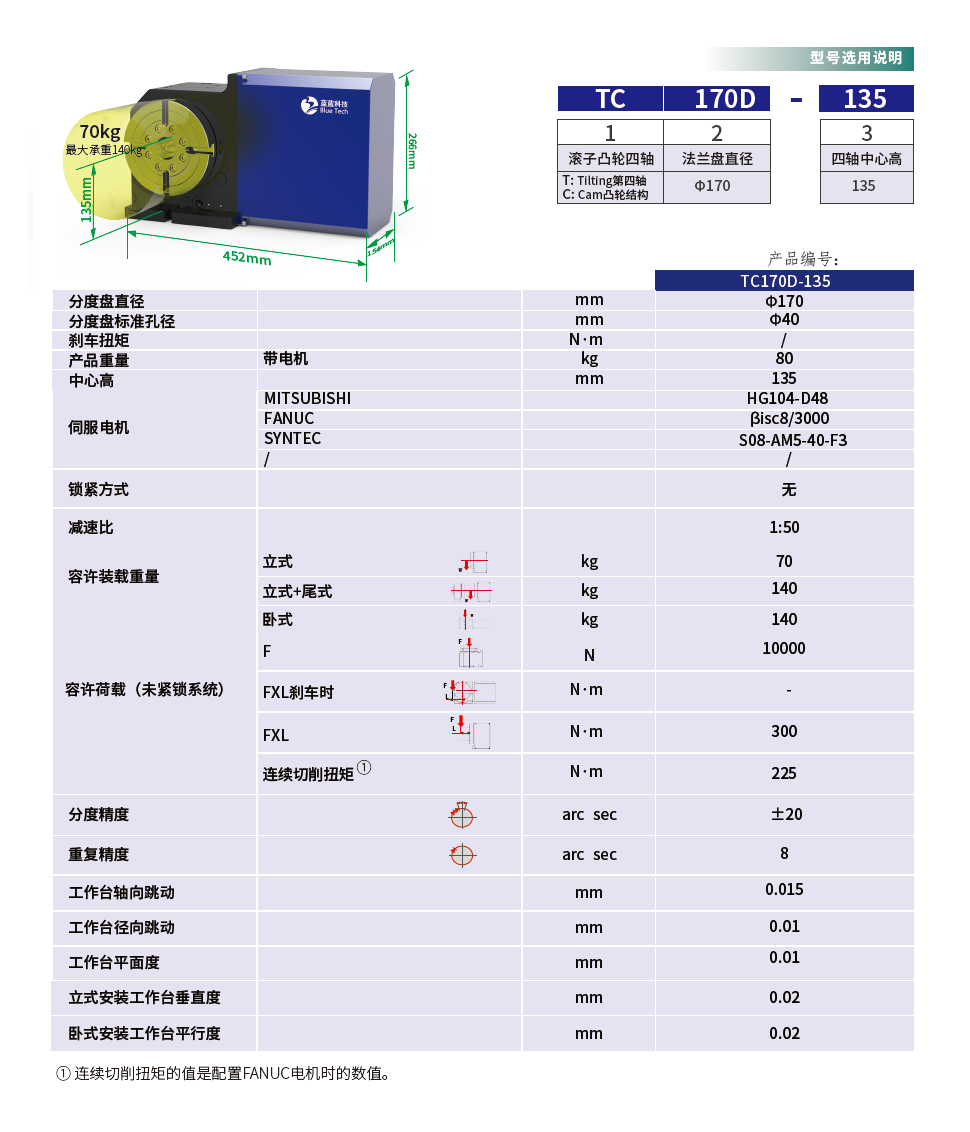 • 产品型号:TC170D-135(基座130 不带刹车,不含法兰盘)